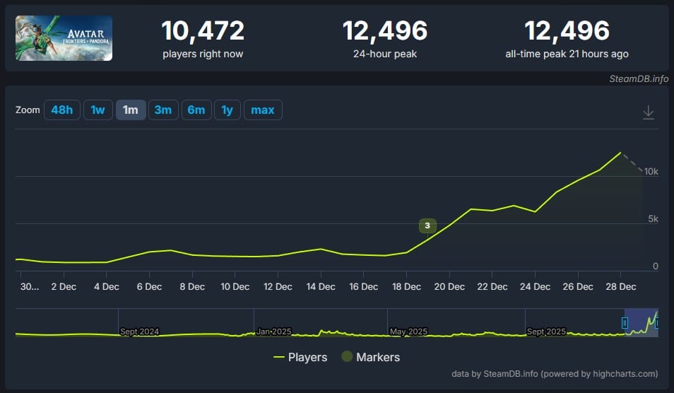 Avatar: Frontiers of Pandora – Aktuelle Steam-Zahlen von SteamDB.info – Screenshot