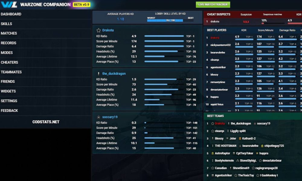 Die Warzone-App zeigt individuelle Kill/Death-Verhältnisse sowie Statistiken für jeden Kader und hat ihre positiven Seiten. Wie die Nachrichtenquelle und der Leaker ModernWarzone auf Twitter hervorhebt, muss die App nicht in böswilliger Weise verwendet werden.